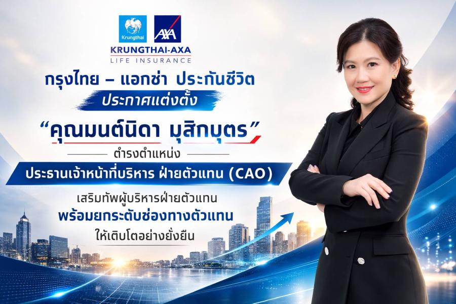 กรุงไทย – แอกซ่า ประกันชีวิต ประกาศแต่งตั้ง คุณมนต์นิดา มุสิกบุตร ดำรงตำแหน่ง ประธานเจ้าหน้าที่บริหาร ฝ่ายตัวแทน (CAO) เสริมทัพผู้บริหารฝ่ายตัวแทน พร้อมยกระดับช่องทางตัวแทนให้เติบโตอย่างยั่งยืน