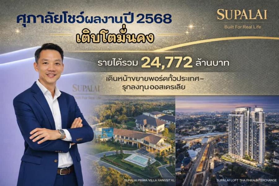 ศุภาลัยโชว์ผลงานปี 2568 เติบโตมั่นคง รายได้รวม 24772 ล้านบาท เดินหน้าขยายพอร์ตทั่วประเทศ-รุกลงทุนออสเตรเลีย