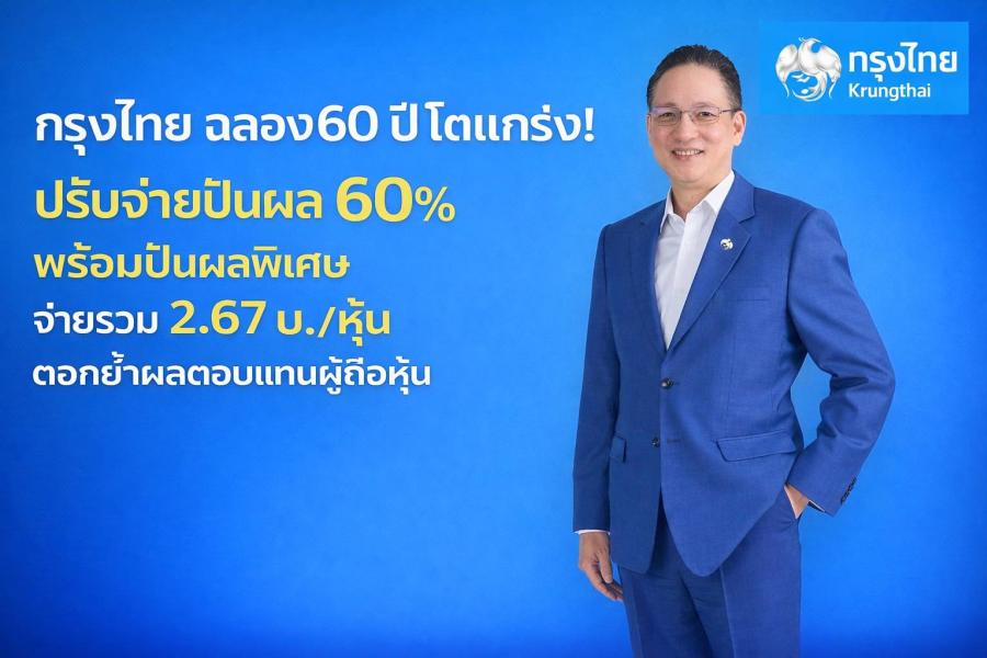 กรุงไทย ฉลอง 60 ปี โตแกร่ง! ปรับจ่ายปันผล 60% พร้อมปันผลพิเศษ จ่ายรวม 2.67 บ./หุ้น ตอกย้ำผลตอบแทนผู้ถือหุ้น