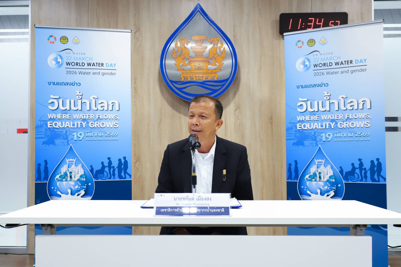 วันนี้ (19 มีนาคม 2569) นายชยันต์ เมืองสง เลขาธิการสำนักงานทรัพยากรน้ำแห่งชาติ (สทนช.) เปิดเผยว่า องค์การสหประชาชาติกำหนดให้วันที่ 22 มีนาคมของทุกปีเป็นวันน้ำโลก (World Water Day) เพื่อสร้างความตระหนักรู้เกี่ยวกับความสำคัญของทรัพยากรน้ำ และผลักดันให้ประเทศต่าง ๆ ร่วมกันแก้ไขปัญหาด้านน้ำอย่างยั่งยืน โดยปี 2569 ได้มุ่งเน้นหัวข้อ “Water and Gender” หรือ “น้ำและความเท่าเทียมทางเพศ” เพื่อสะท้อนบทบาทสตรีและกลุ่มเปราะบางในระบบการบริหารจัดการน้ำ ตลอดจนส่งเสริมการเข้าถึงทรัพยากรน้ำอย่างเท่าเทียมในทุกมิติของสังคม สำหรับประเทศไทย ภาครัฐตระหนักดีว่าการจะบรรลุการพัฒนาที่ยั่งยืนได้นั้น ต้องเปิดโอกาสให้ทุกคน ทุกเพศ และทุกช่วงวัย ได้เข้าถึงทรัพยากรน้ำและมีส่วนร่วมในการตัดสินใจ สทนช. จึงได้กำหนดจัดงาน “วันน้ำโลก ประจำปี 2569” ภายใต้แนวคิด “Water and Gender: Where Water Flows Equality Grows” ในวันที่ 23 มีนาคม 2569 ณ สำนักงานทรัพยากรน้ำแห่งชาติ จังหวัดนนทบุรี ซึ่งจะเป็นเวทีสำคัญในการยกระดับความร่วมมือจากทุกภาคส่วน เพื่อการบริหารจัดการทรัพยากรน้ำอย่างยั่งยืนและเท่าเทียม โดยได้รับเกียรติจาก นายอนุทิน ชาญวีรกูล นายกรัฐมนตรี เป็นประธานในพิธีเปิดงานและมอบนโยบายในประเด็นดังกล่าวด้วย