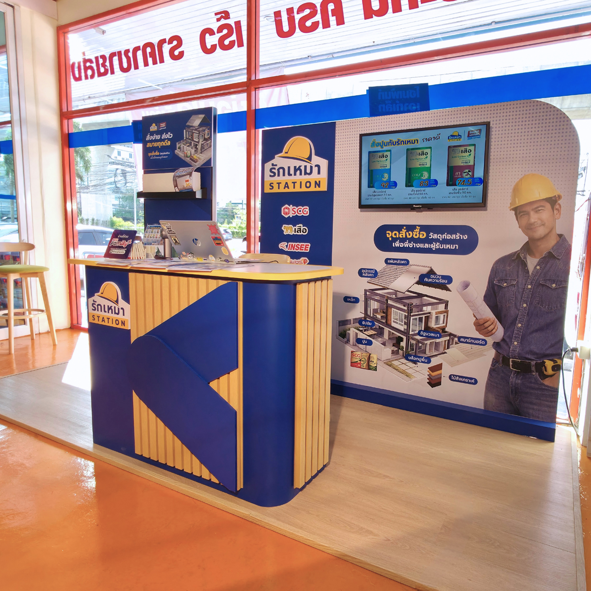 จุดบริการ รักเหมา Station x Homepaint ทำหน้าที่เป็น "ผู้ช่วยจัดซื้อวัสดุก่อสร้าง" ให้กับลูกค้า ตั้งแต่ให้คำแนะนำสินค้า ประเมินปริมาณวัสดุให้เหมาะกับหน้างาน จัดหาสินค้าจากหลากหลายแบรนด์ อาทิ ปูนโครงสร้าง เอสซีจี (SCG) ปูนเสือ อิฐมวลเบา (Q-Con) ซีแพค (CPAC) และดูร่าวัน (DURA One) รวมไปถึงการบริหารการจัดส่งให้ถึงไซต์งานตามเวลาที่ลูกค้าต้องการ