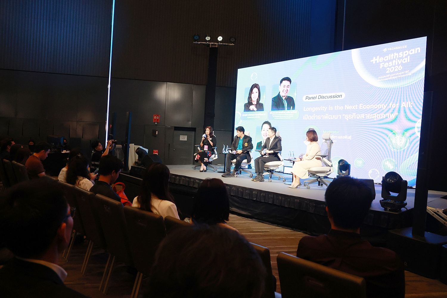 นางนุสรา (อัสสกุล) บัญญัติปิยพจน์ นายกสมาคมประกันชีวิตไทย ให้เกียรติเป็นวิทยากรร่วมกับ ผศ.ดร.นพ.อมรพันธุ์ เสรีมาศพันธุ์ ผู้อำนวยการหลักสูตรสหสาขาวิชาชีวเวชศาสตร์ คณะบัณฑิตวิทยาลัย จุฬาลงกรณ์มหาวิทยาลัย และ ประธานดำเนินการหลักสูตรเวฬา และ Janice Chia Founder & Managing Director Ageing Asia ในการเสวนาหัวข้อ “Longevity is the Next Economy for All: เปิดตำราพัฒนาธุรกิจสายสุขภาพ” ภายในงาน Healthspan Festival 2026 โดยมุ่งเป้าบูรณาการเทคโนโลยี สุขภาพ และการท่องเที่ยว เพื่อผลักดันประเทศไทยสู่การเป็น “Health & Wellness Destination” แห่งภูมิภาค ให้แก่ผู้นำองค์กร นักลงทุน บุคลากรทางการแพทย์ และประชาชนทั่วไปที่ใส่ใจเรื่องสุขภาพ