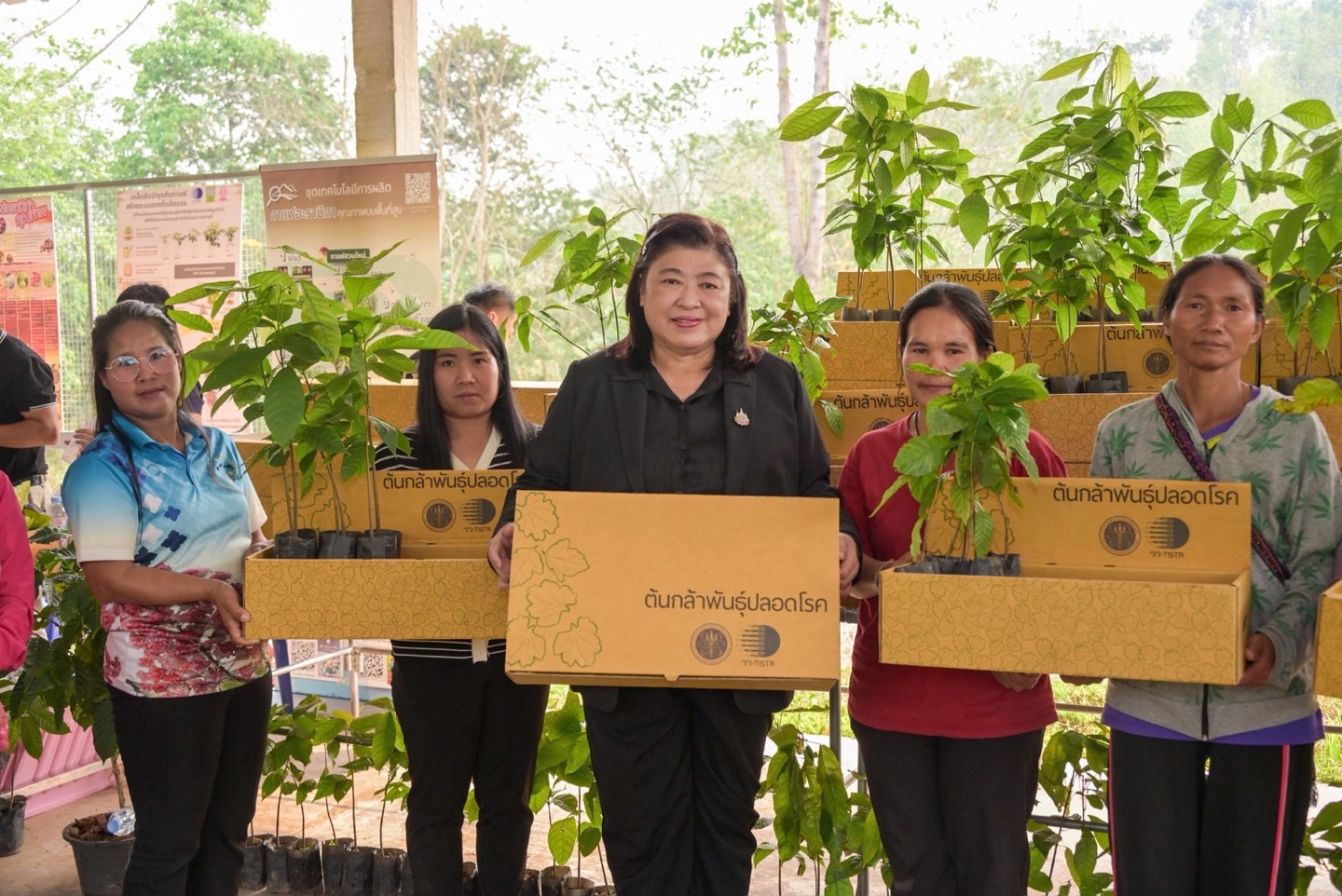 ถัดมาเป็นการส่งมอบนวัตกรรมเครื่องจักรสำคัญ ได้แก่ เครื่องสีกาแฟ เครื่องล้างเมือก และเครื่องอบเมล็ดกาแฟ ให้แก่หน่วยงานในพื้นที่ เพื่อสนับสนุนกระบวนการผลิตกาแฟตั้งแต่ต้นน้ำถึงปลายน้ำอย่างมีประสิทธิภาพ