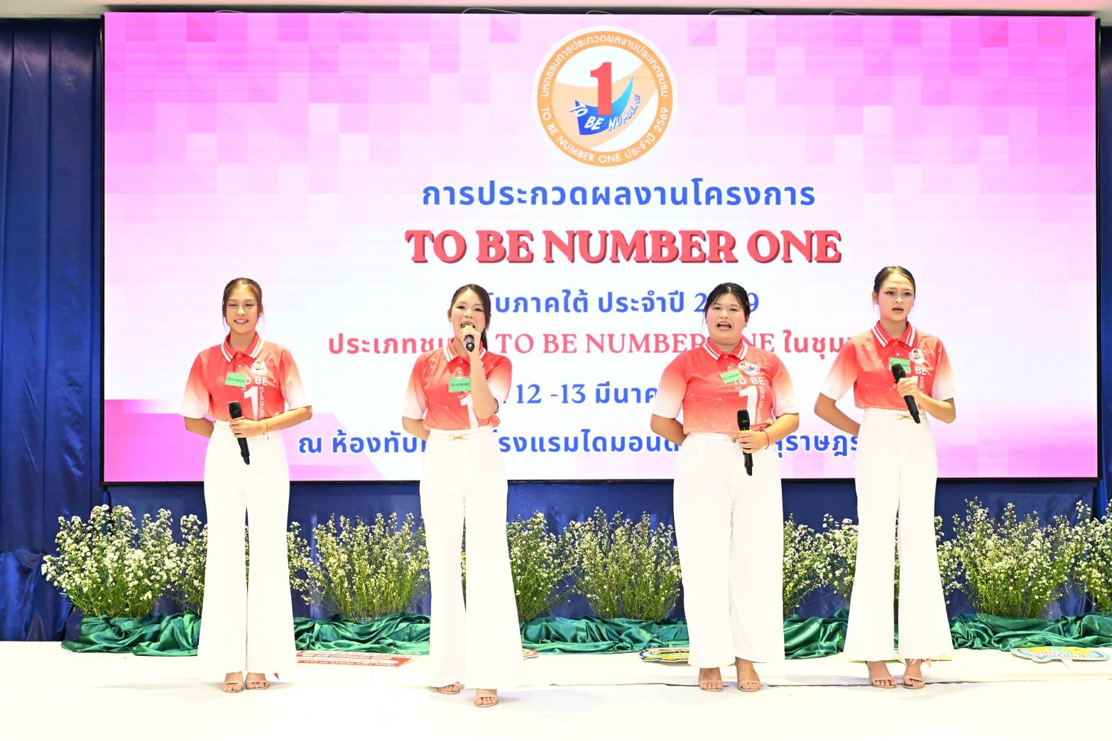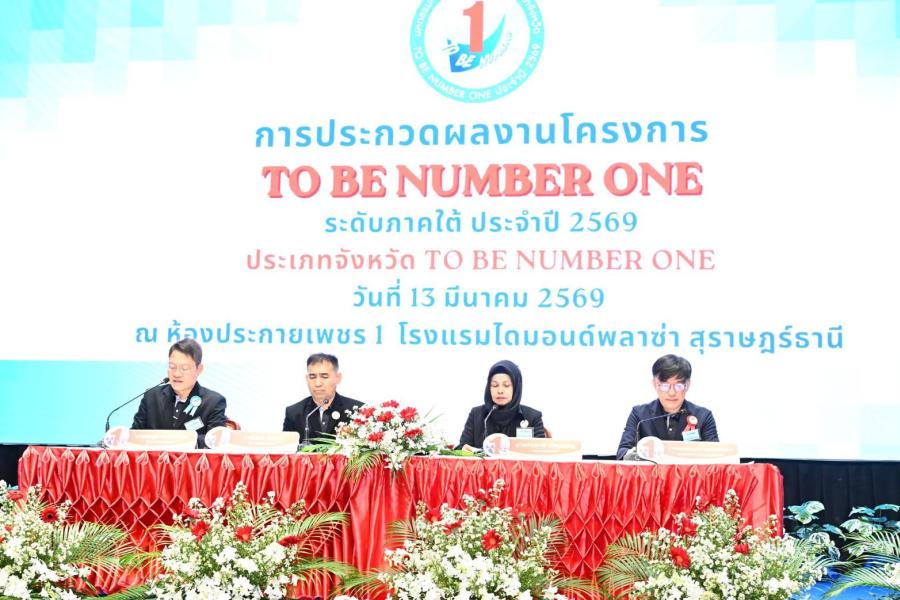 เมื่อวันที่ 12 - 13 มีนาคม 2569 ที่ผ่านมา ณ โรงแรมไดมอนด์ พลาซ่า จังหวัดสุราษฎร์ธานี โครงการ TO BE NUMBER ONE ในทูลกระหม่อมหญิงอุบลรัตนราชกัญญา สิริวัฒนาพรรณวดี จัดกิจกรรมการนำเสนอผลงานจังหวัด อำเภอ และชมรม TO BE NUMBER ONE ระดับภาคใต้ ซึ่งเป็นภาคที่ 4 ของการนำเสนอผลงาน ประจำปี 2569 เพื่อขับเคลื่อนการดำเนินโครงการตามแนวพระดำริขององค์ประธาน โดยพัฒนารูปแบบและเกณฑ์การนำเสนอผลงานกลุ่มประเภทต่าง ๆ รวมทั้งขยายการดำเนินงานให้ครอบคลุม ทั้งในระดับนโยบาย การบริหารจัดการทั้งในจังหวัด อำเภอ ชุมชน สถานศึกษา สถานประกอบการ สถานพินิจและคุ้มครองเด็กและเยาวชน ศูนย์ฝึกและอบรมเด็กและเยาวชน เรือนจำ/ทัณฑสถาน และสำนักงานคุมประพฤติ โดยมีนายเอกราช ชวีวัฒน์ ผู้ตรวจราชการกระทรวงศึกษาธิการ ทำหน้าที่ประธานในพิธีประกาศผลและมอบรางวัลพระราชทาน
